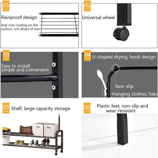 Cloth Rack, Clothes Hanger Stand Clothes Dryer Rail with Branch Hook (130cm-White)