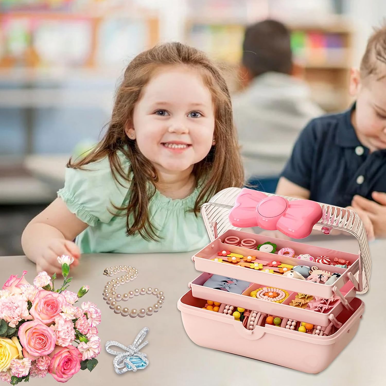 - Adorable Design: This transparent storage box features an extremely cute design, with the entire box being pink in color. The top of the box has a beaded handle, and there is a butterfly-shaped latch that adds a playful touch. The colors and design are delightful, with a very high aesthetic value, making it perfect for organizing various hair accessories for girls