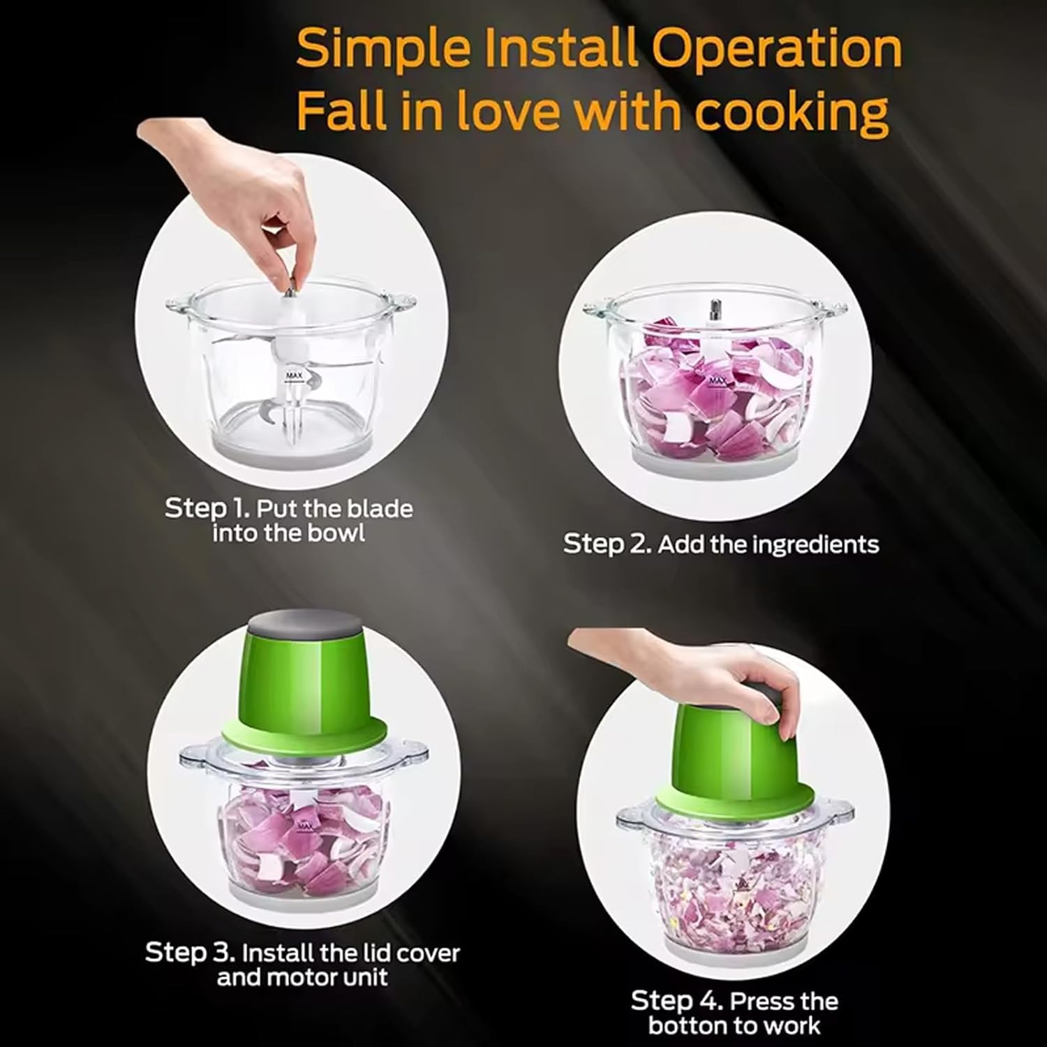 - Efficient and Time-Saving: Electric meat grinder delivers high-speed chopping and grinding in just 10 seconds—ideal for meats, onions, salad ingredients, and more. Save time in the kitchen with this powerful 200W motor.