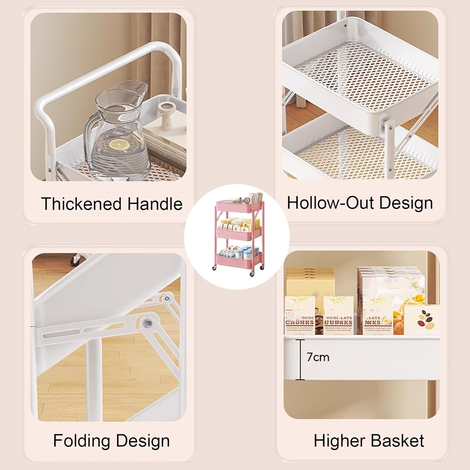 - Multifunctional Foldable Storage Trolley: This carbon steel trolley is a versatile storage for various spaces. It's for the kitchen to neatly organize fruits and vegetables, in the bedroom for books, or in the bathroom for toiletries